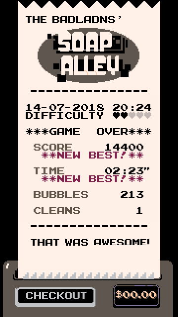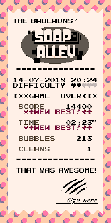 A homage to the wonderful core loop of certain game released in 1994 by a Japanese company, cherished by players of all ages after countless iterations, clones, and variations. Recently, it has been specially mistreated in the mobile ecosystem. Countless clones lacking in everything that made the original special are currently available, replacing many interesting mechanics with eye-candy and soulless fanfare. SOAP ALLEY tries to recover the spirit of the original, with a tight, fun, core game loop without cheap make up.